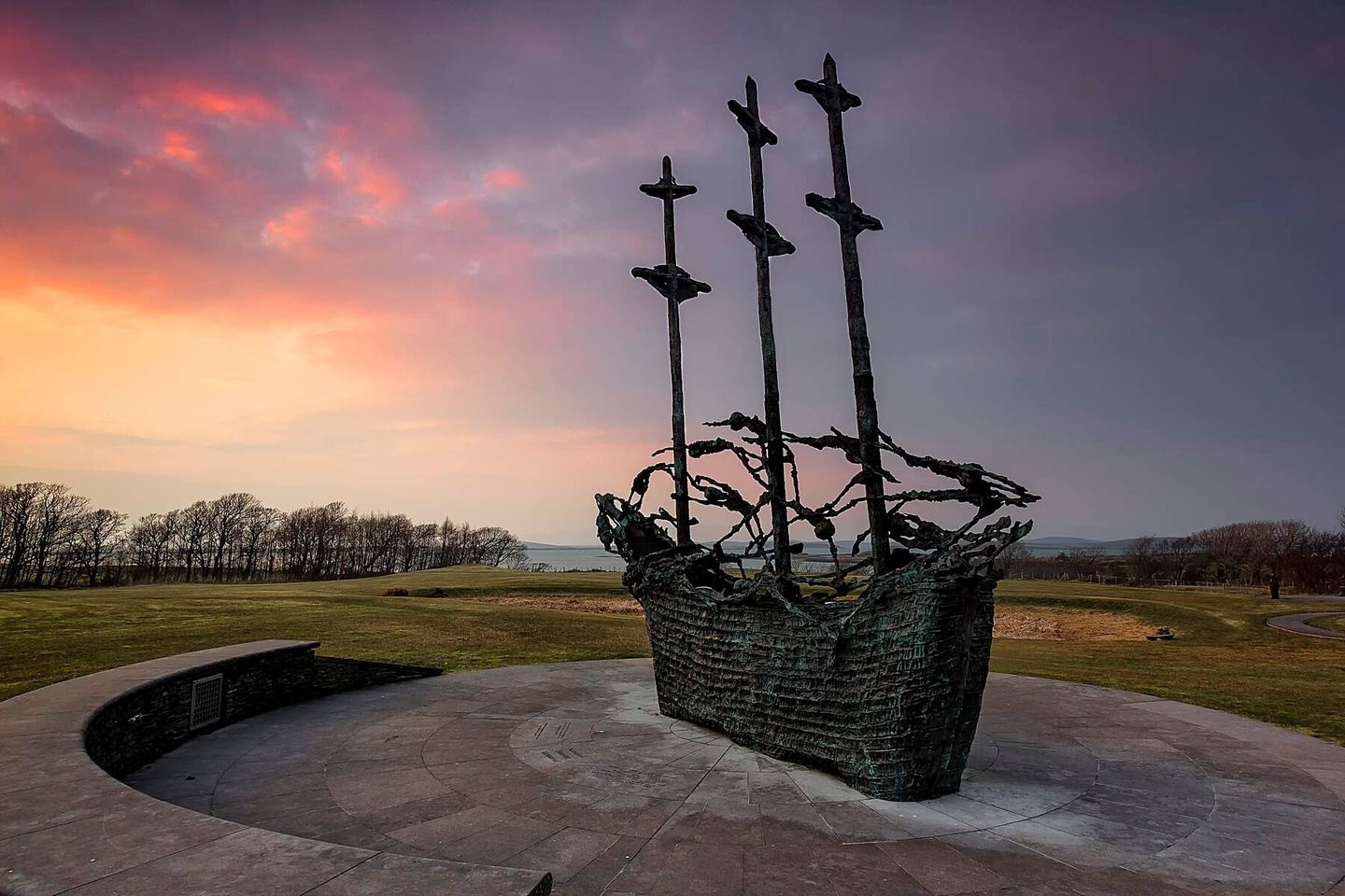 Travel to Clonmacnoise, a site of ancient crosses, round towers, and spiritual quiet.